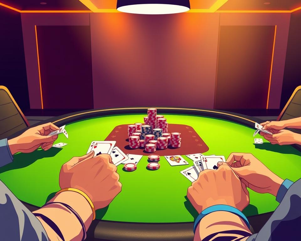 2. Mengendalikan Narasi Permainan Setiap kali Anda bertaruh atau menaikkan, Anda sedang menulis sebuah cerita. Dengan pintu rendah, cerita yang Anda tulis adalah: “Saya memiliki A-2-3 di tangan. Lanjutkan jika Anda berani.” Lawan Anda akan terpaksa berpikir dua kali untuk melanjutkan, bahkan jika tangan mereka sebenarnya cukup layak. Anda memaksa mereka untuk bereaksi terhadap kisah Anda, bukan hanya kartu mereka sendiri.
